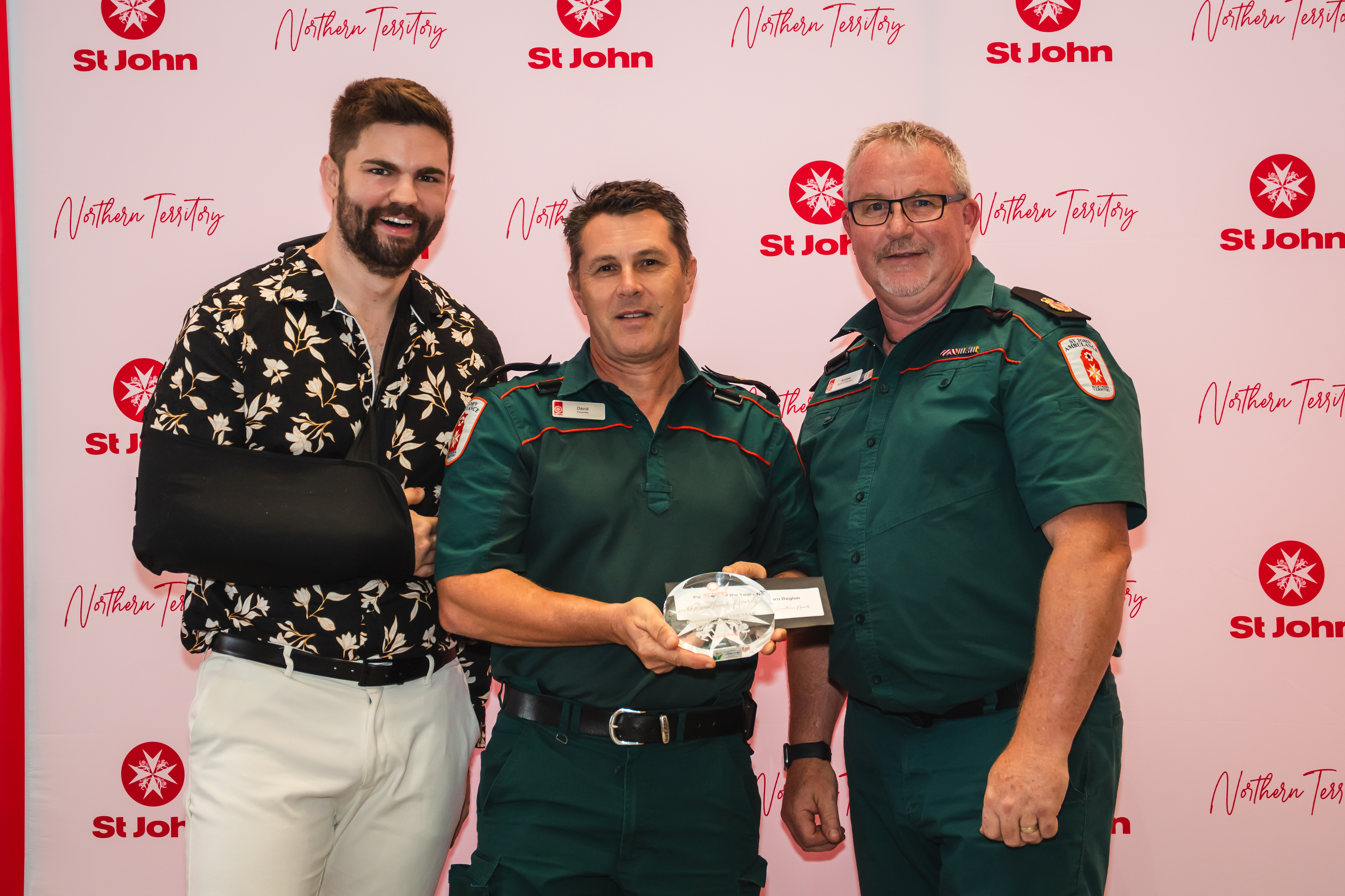 Left to right: Curtis Cooper, ACP NT Member Committee Chair, David Beck, Winner of Paramedic of the Year – Northern Region and Andrew Thomas ASM, St John NT Director of Ambulance Services