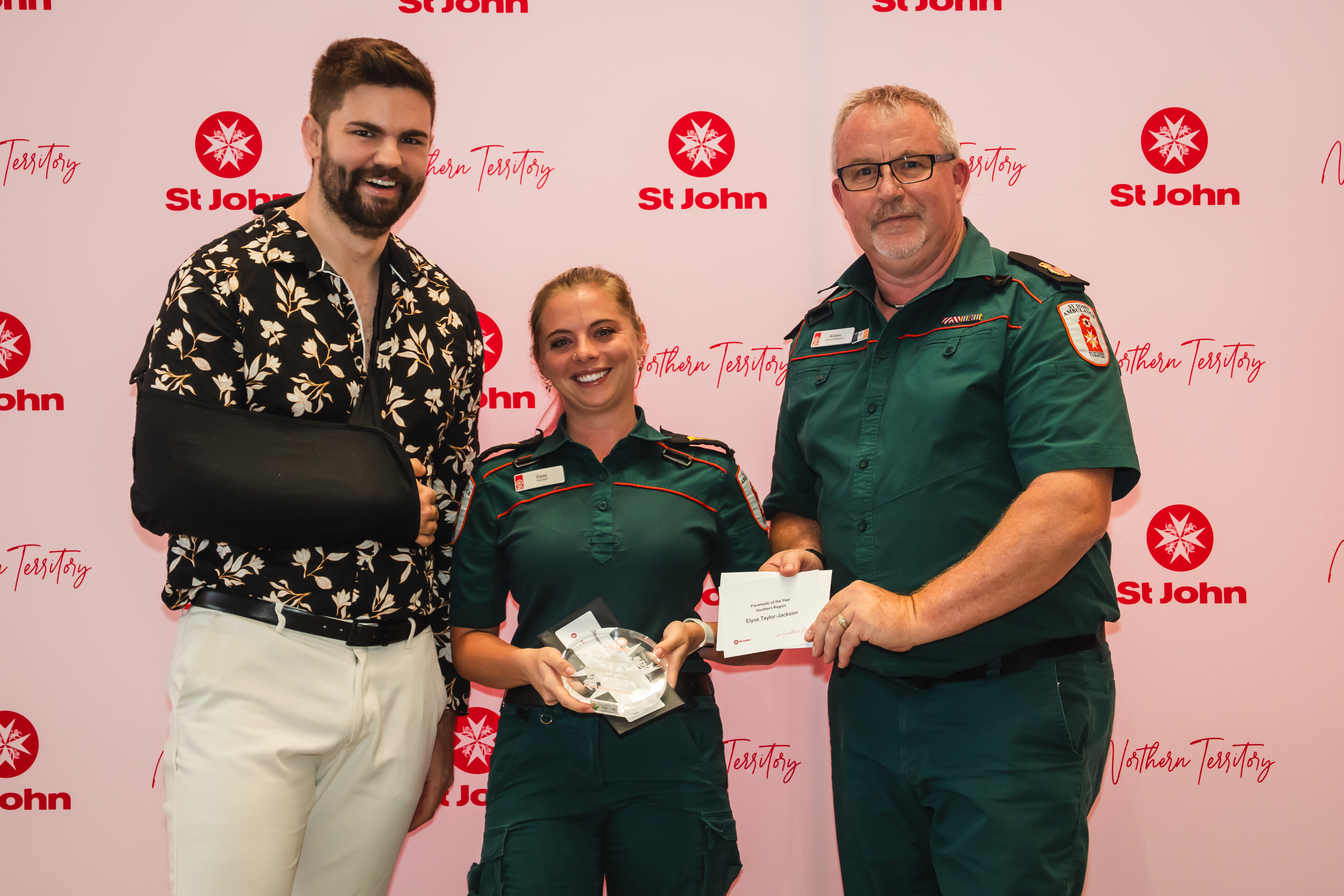 Left to right: Curtis Cooper, ACP NT Member Committee Chair, Elyse Taylor-Jackson, Winner of Paramedic of the Year – Southern Region and Andrew Thomas ASM, St John NT Director of Ambulance Services